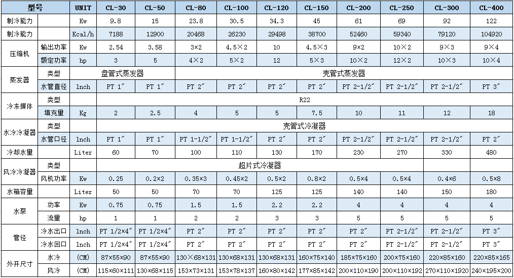 擠出線材及抽粒行業(yè)用冷水機:很明顯,水槽是個開放式的容器,所以,我們在選配冷水機時,要注意一點,冷水機的蒸發(fā)器,應(yīng)選用殼管式,不可以選用盤管式的。其原因如下:盤管式冷水機的蒸發(fā)器,是一個開放式的水箱,當(dāng)冷水機停止工作時,泵浦沒有壓力,水槽的水位一般高于冷水機,此時,水槽的水會回流到冷水機的水箱,造成冷水機的水箱溢水。殼管式則不同,其蒸發(fā)器是一個閉回路,不會有溢水的問題。
